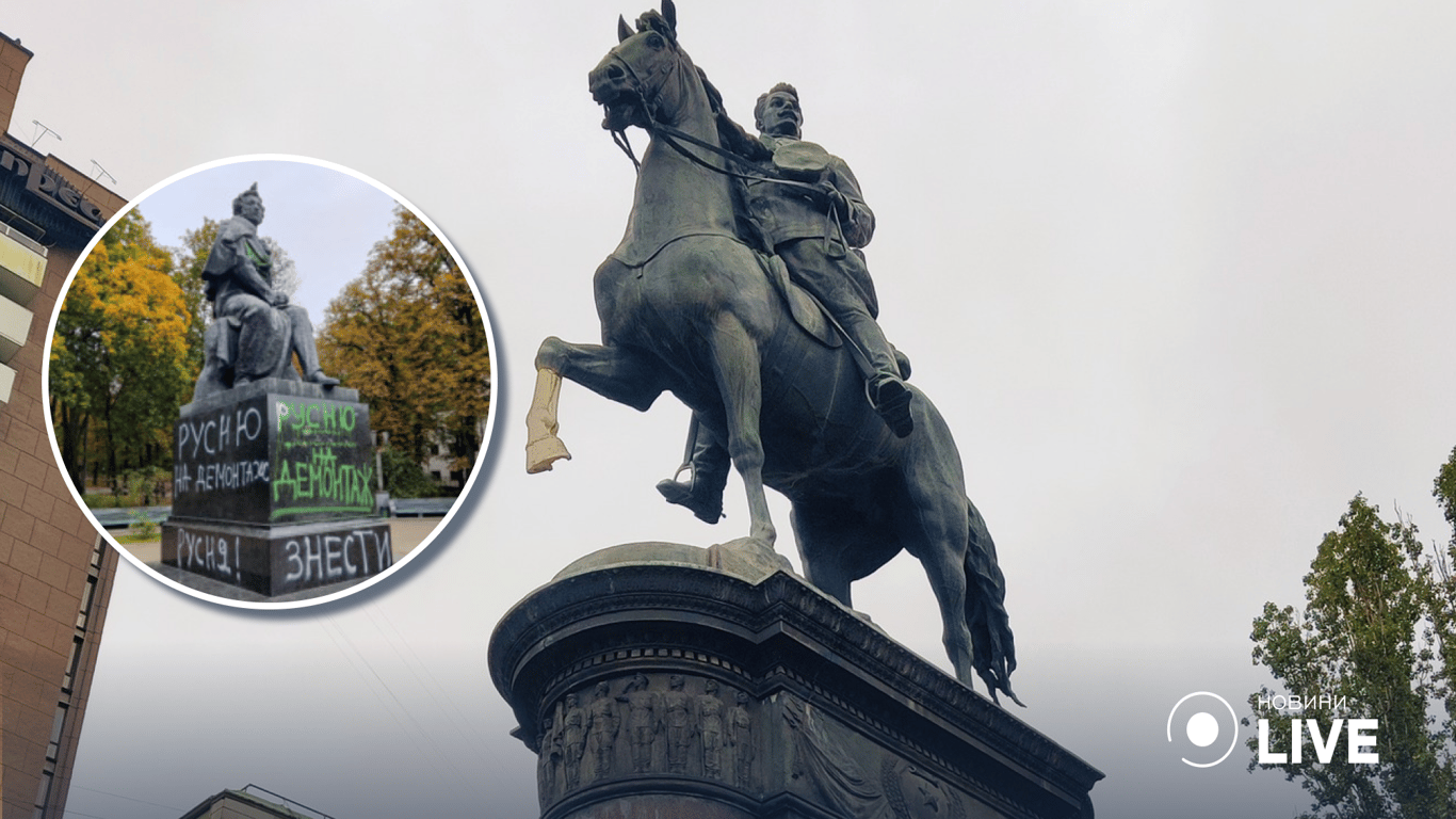 Також активісти розмалювали пам'ятник російському поетові Олександру Пушкіну з вимогою його знести.