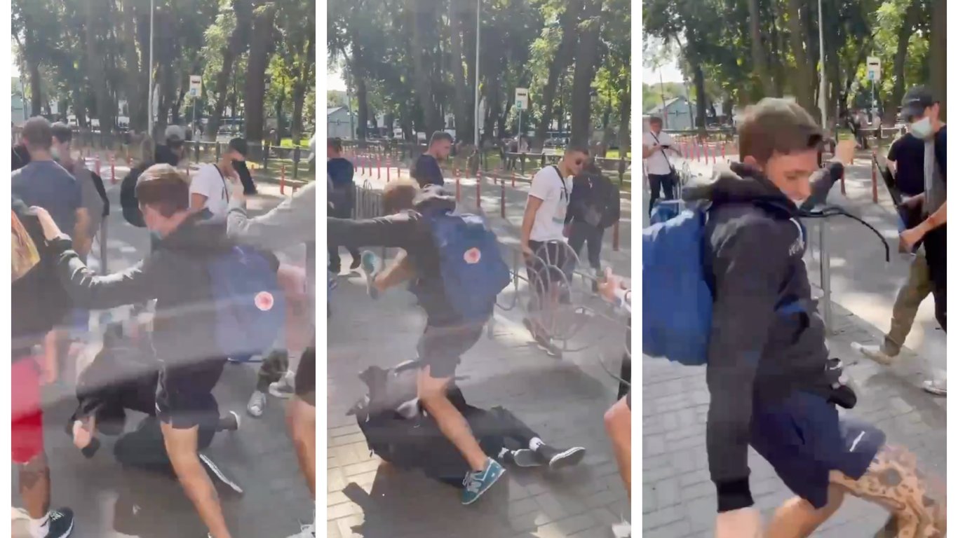 Як видно на відео, група чоловіків оточила фотокореспондента, а троє з них почали бити його ногами по голові, спині та ногах. Згодом один агресивний хлопець продовжував його бити, коли йому "свої" казали припинити та йти.