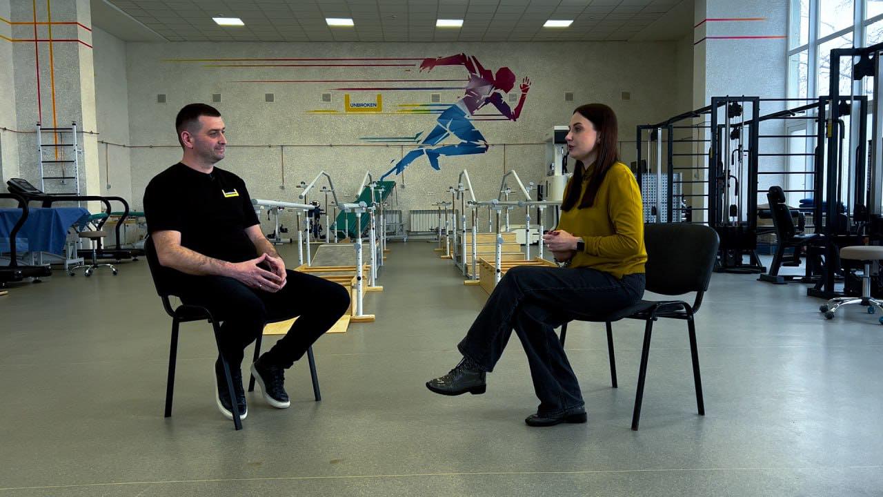— Ми перебуваємо в залі реабілітації національного центру "Незламні". Як на мене, це унікальне місце, тому що наша команда тут вона творить дива з пацієнтами. Тут ми вчимося по-новому ходити, володіти заново своїми частинами тіла. У цьому залі займаються як цивільні, так і військові.