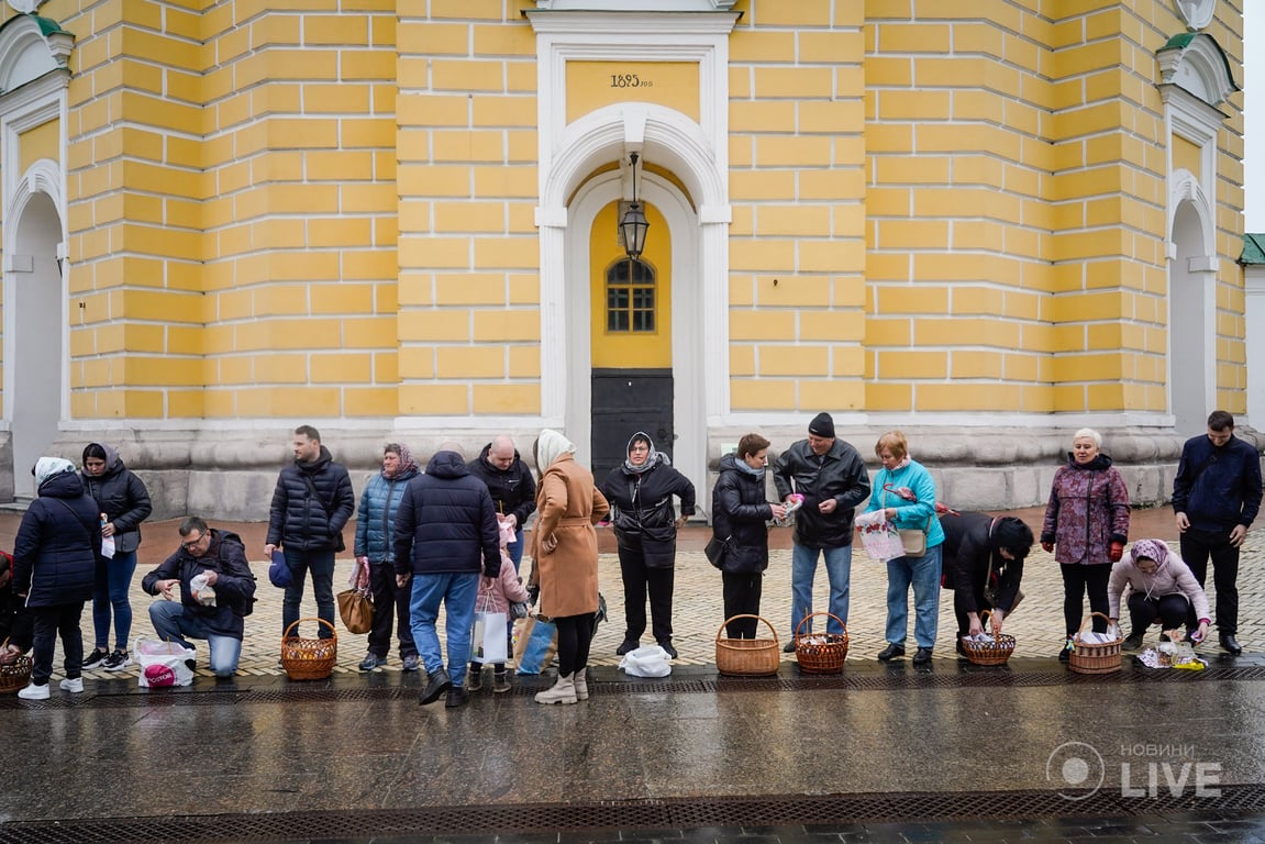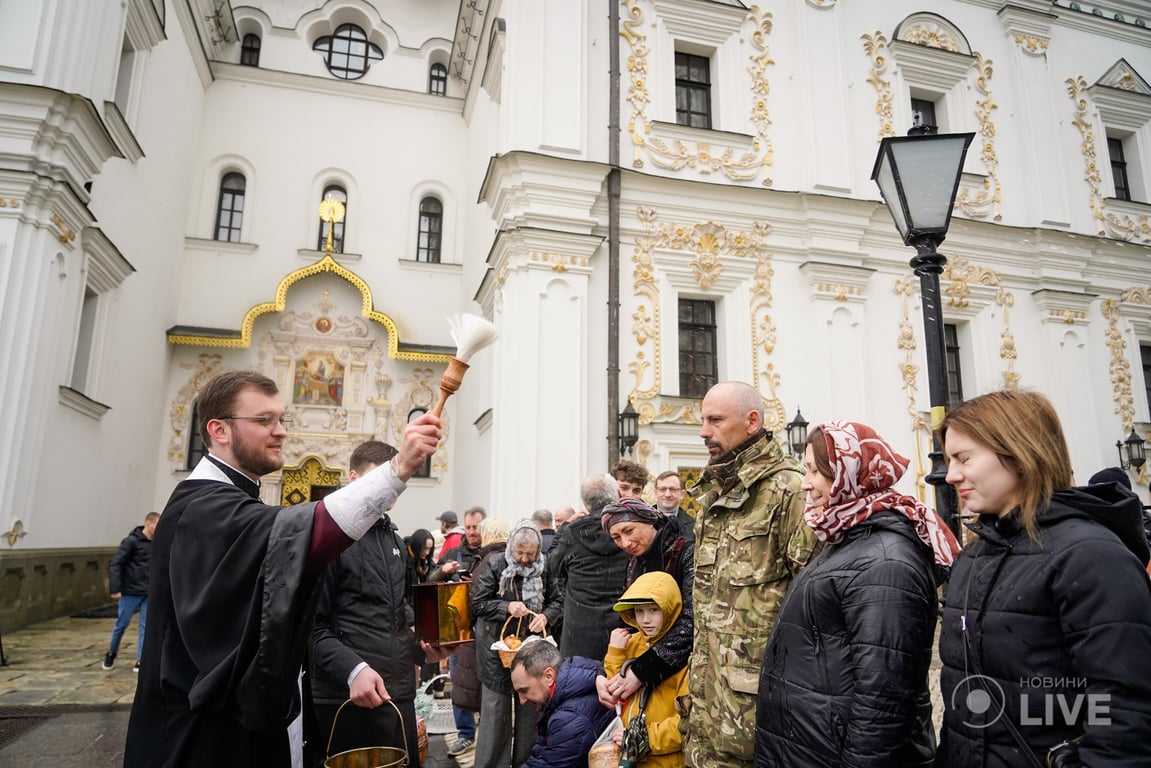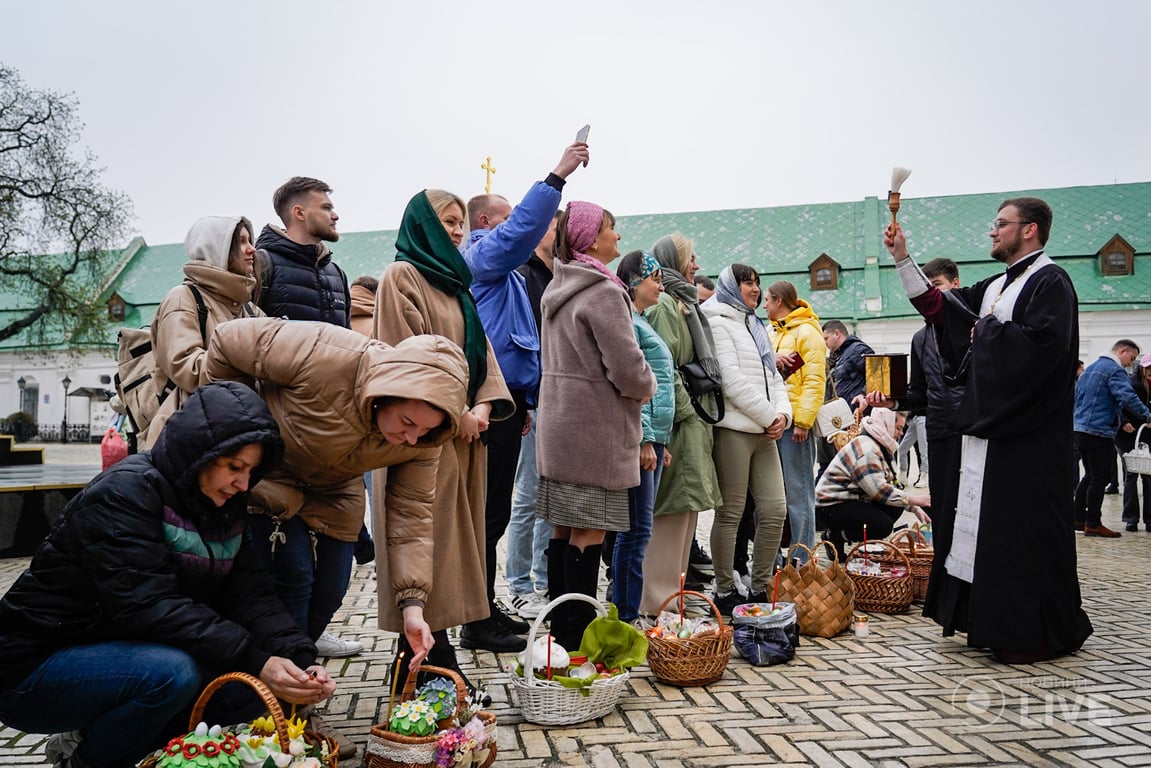 Освячення пасок на Великдень у Києво-Печерській Лаврі завершилося близько 12-ї дня. Здебільшого люди освячували традиційні великодні наїдки: паски, мʼясо, ковбасу, сало та, звичайно ж, яйця.