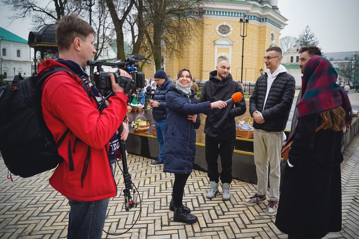 Ми також зустріли двох військових, які освячували великодні кошики, перебуваючи у відпустці, та поцікавилися у них, як після фронту вони сприймають мирний Київ.