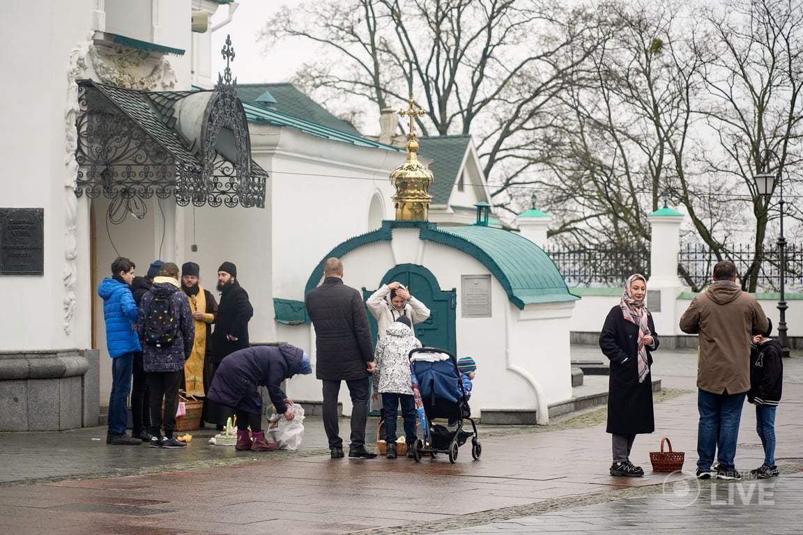 На Великдень тут не було помічено жодних активістів, як і жодних мітингів чи сутичок. Порядок навколо Києво-Печерської Лаври забезпечували десятки правоохоронців. Кілька з них в цілях безпеки перевіряли документи та кошики у кожного з вірян безпосередньо вже перед входом до Успенського собору.