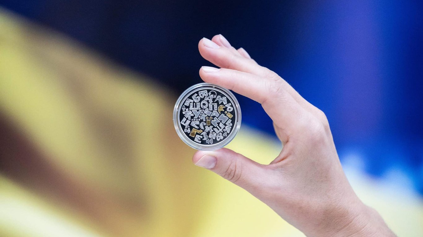 "На її аверсі розміщено стилізовану літеру "Їˮ із соловейком, що символізує мелодійність та співучість української мови, в центрі літери — малий Державний Герб України, а на дзеркальному тлі монети розміщено текстуру з контурів літер української абетки, що асоціативно нагадує гніздо", — мовиться у повідомленні.