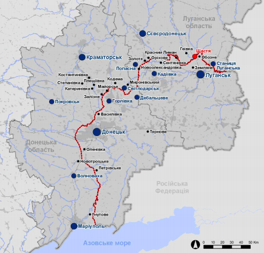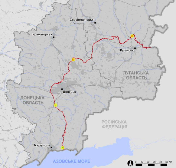 Всі порушення режиму припинення вогню сталися на північний захід від населеного пункту Обозне (непідконтрольний урядові, 18 км на північ від Луганська). За попередню добу у цій області було зафіксовано 76 таких порушень.