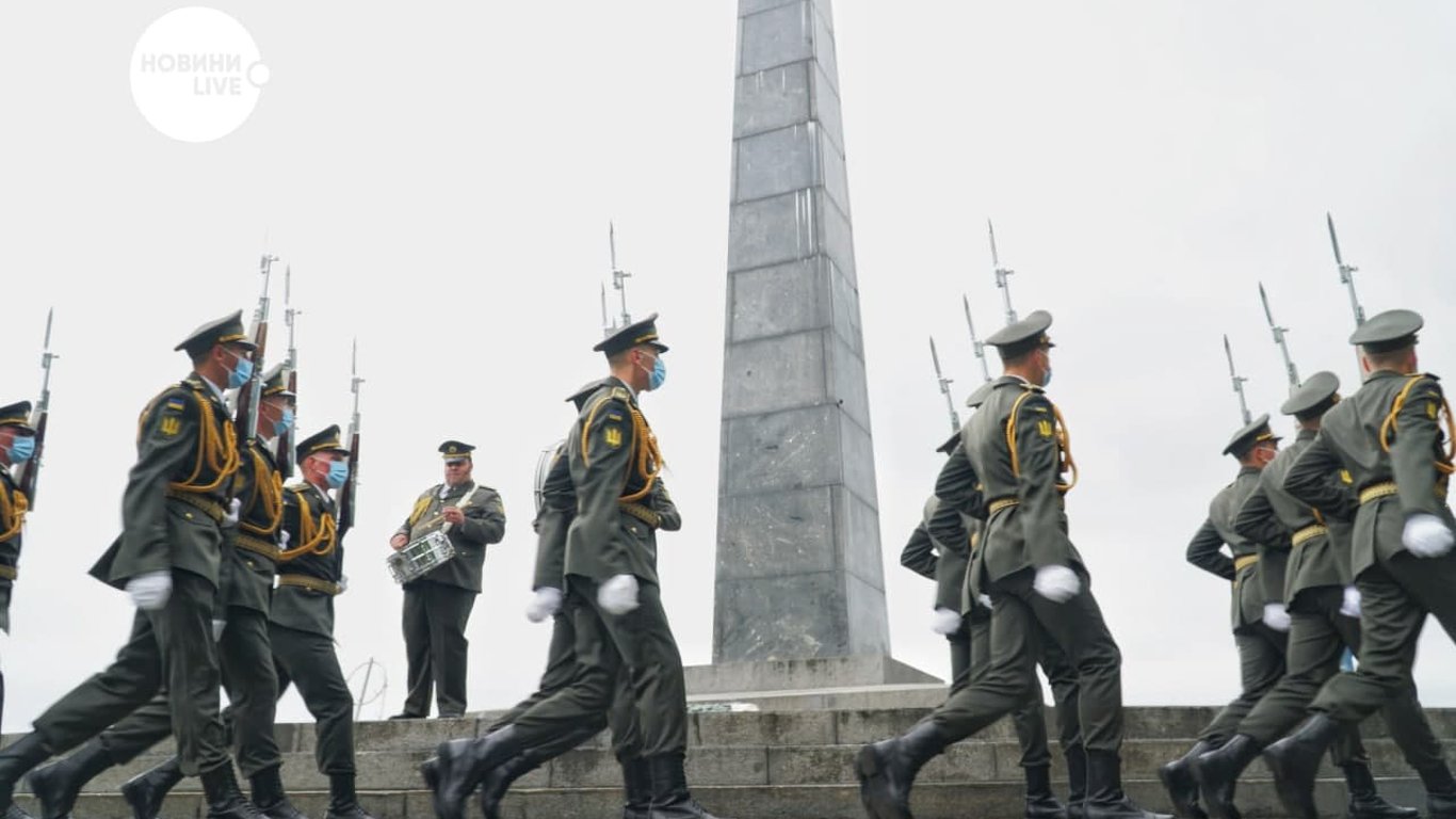 Курйозна ситуація відбулася зранку на Монументі слави. На місці, де військовий оркестр готувався до виступу, четверо робітників комунальних служб ремонтували дірки у плитці.