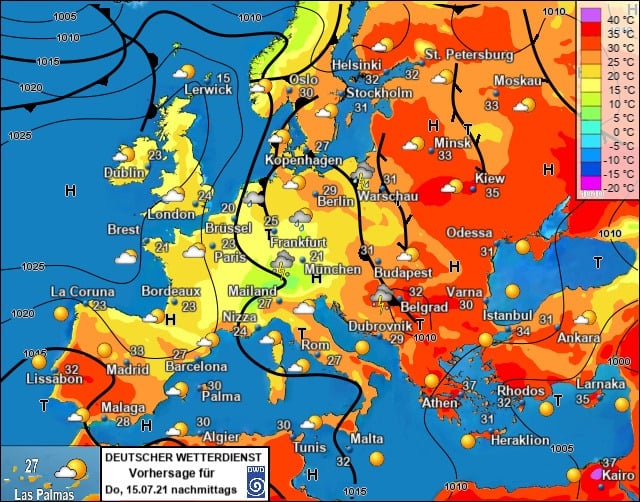Згідно з погодними картами, спекотніше буде хіба що в Афінах - там температура повітря сягне +37.