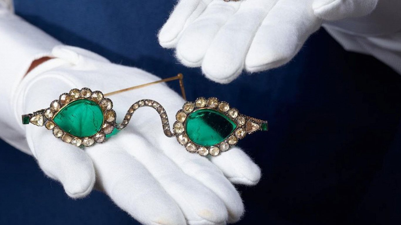 Алмазы для одной пары линз были добыты в знаменитых приисках Голконды, расположенных в центре Индии. В Sotheby's рассказали, что обе линзы были выточены из цельного алмаза в 200 каратов. Вторая пара линз сделана из колумбийского изумруда - также из цельного камня примерно в 300 каратов. Как правило, указывается в описании лота, такие крупные драгоценные камни в то время старались не делить на части.