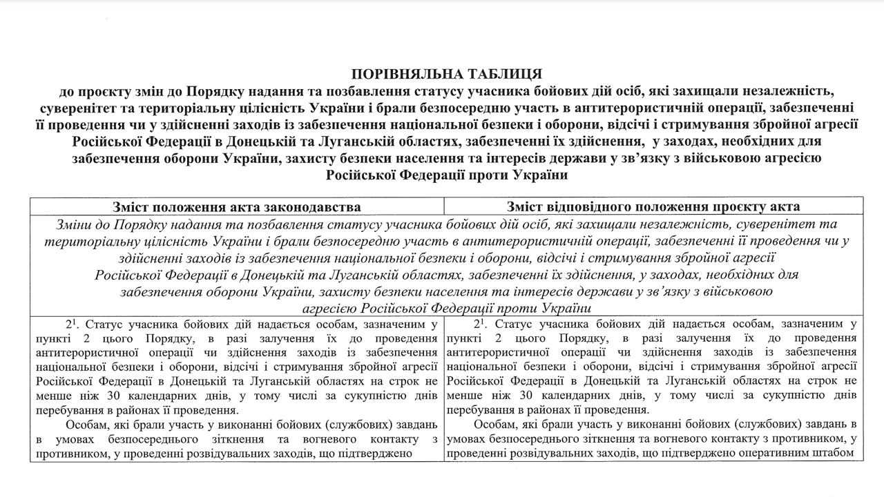 Кабинет Министров Украины упростил процедуру получения статуса Участника боевых действий (УБД). Это стало возможным за счет уменьшения количества документов, которые нужно подавать.