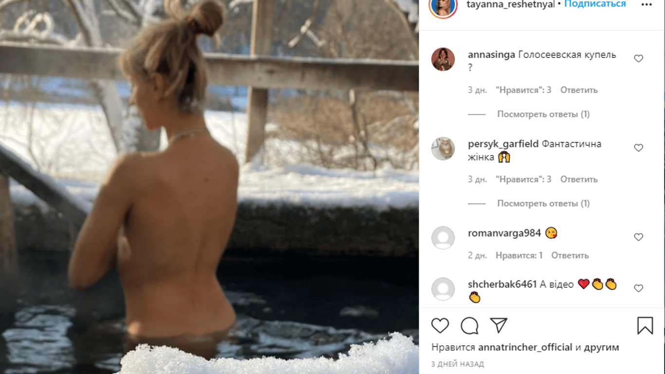 19 января загнало в проруби не только обычных киевлян, но и знаменитостей. Например, певица Солоха поделилась своим опытом "моржевания" с фанами.