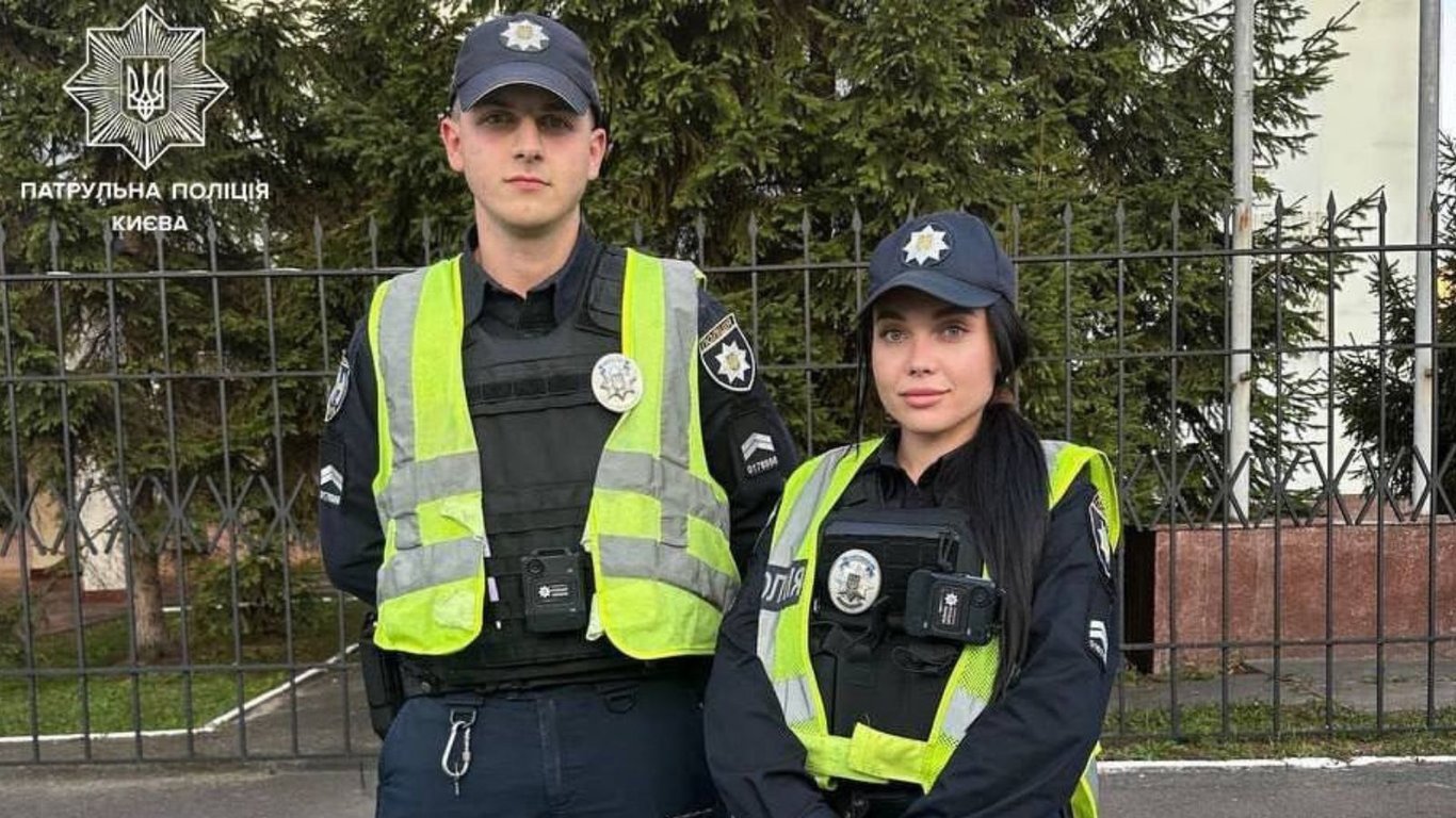 Поліціянти Дмитро Корнієць та Ольга Томінова. Фото: патрульна поліція Києва