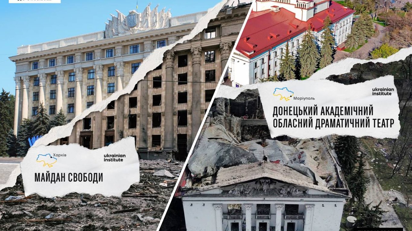 Український інститут спільно з USAID запустили проєкт "Листівки з України", На них зображені історичні та культурні пам'ятки, які знищили росіяни під час війни.