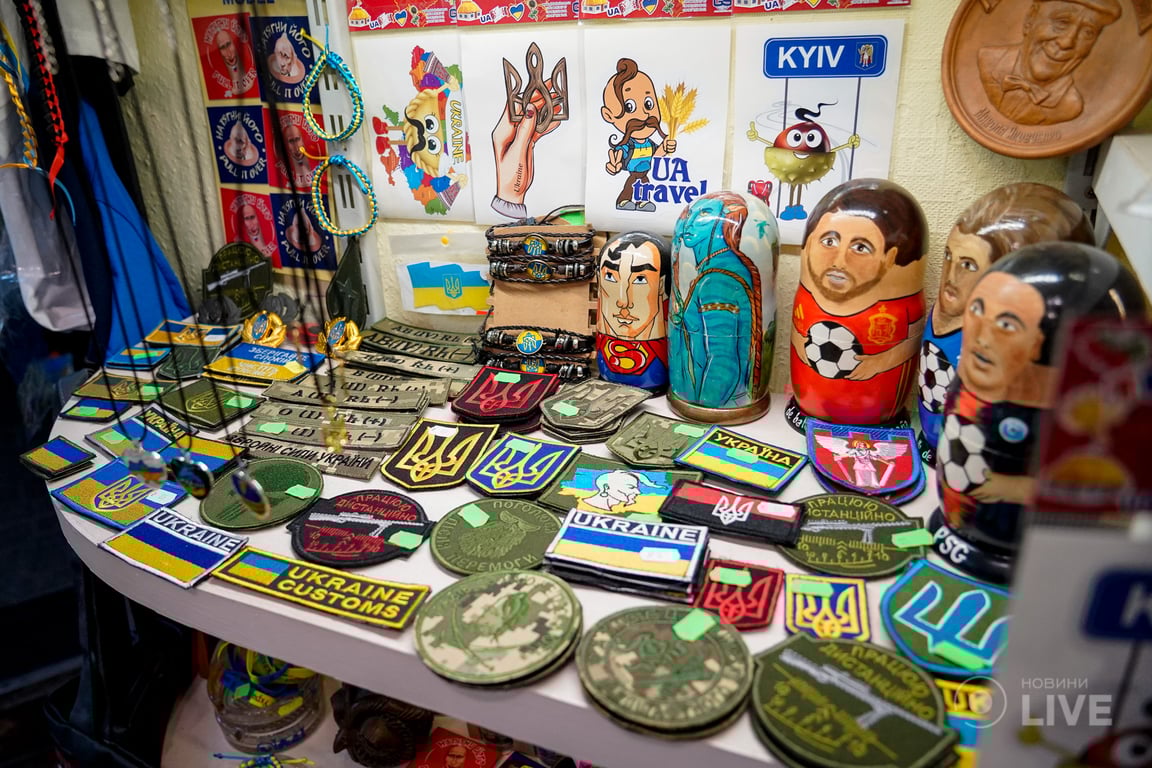 Чи продовжують люди купувати подібний товар, Новини.LIVE дізналося в продавчині пані Оксани. Жінка продає різні патріотичні речі прямо в центрі Києва, на Майдані Незалежності. Каже, що клієнтів багато. Це іноземці, які хочуть купити щось на пам'ять про події в Україні, а також українці, які купують для себе.