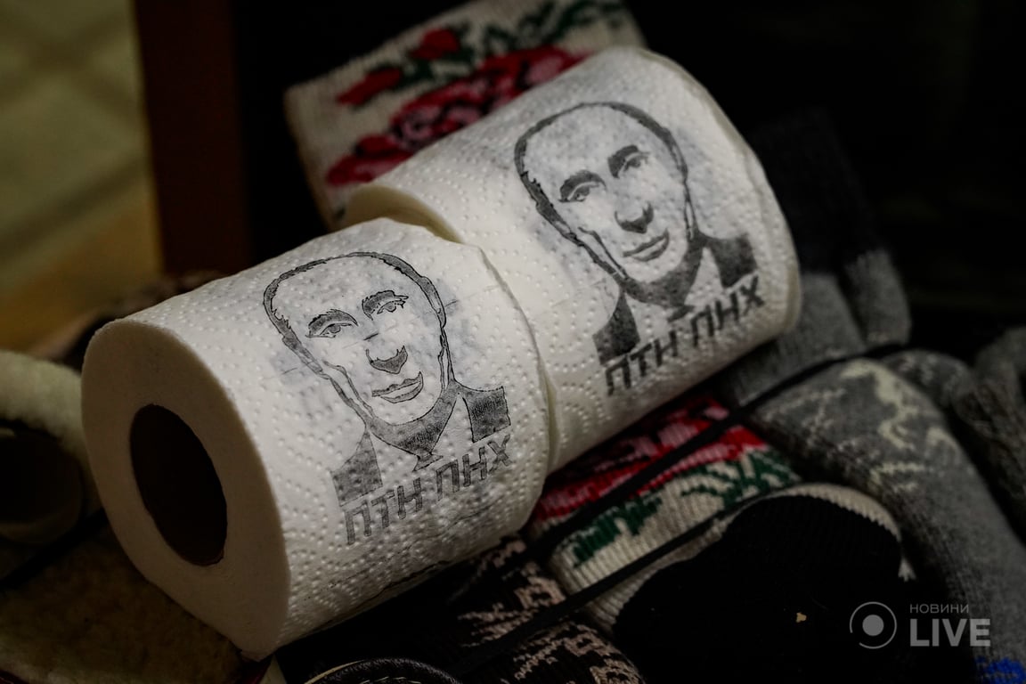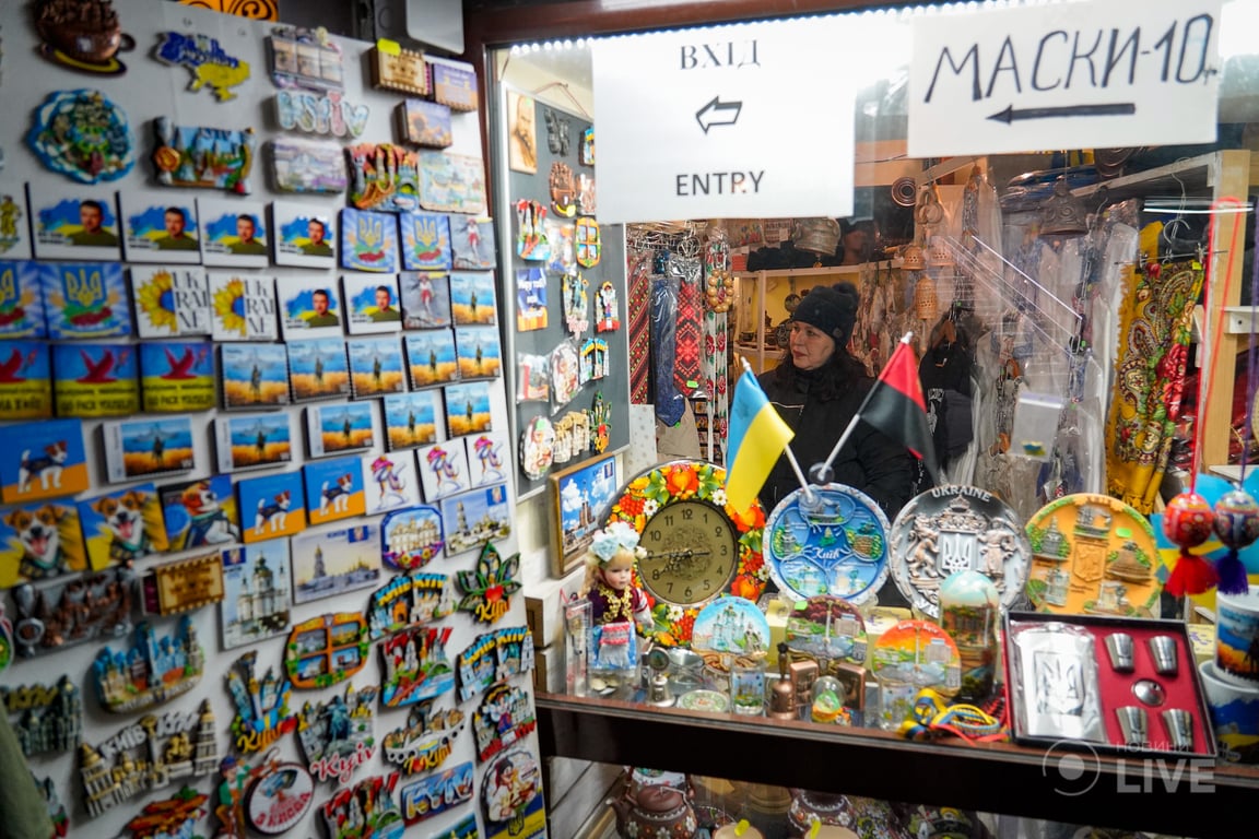 Та найбільше любить обслуговувати українців, які купують сувеніри для людей, в яких вимушено жили за кордоном. Для них везуть прапори, футболки з зображенням марок, туалетний папір з зображенням путіна.